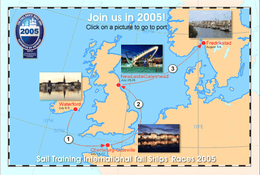 Did you know that the tall Ships Race will sail into Waterford on the 6th of July and depart on the 9th. An unusually large fleet has registered to participate in The Tall Ships’ Races 2005 which will take place between 6 July and 6 August. For each of the four days you can enjoy a packed schedule of cultural visits and sports together with a Crew Parade through the streets and parties, all running late into the night. To date 130 sail training vessels from 26 countries have registered to take part in the race series. The crews will number about 5000 altogether The race goes from Waterford with its parade of Sail on the 9th. This will be a fantastic colourful event.